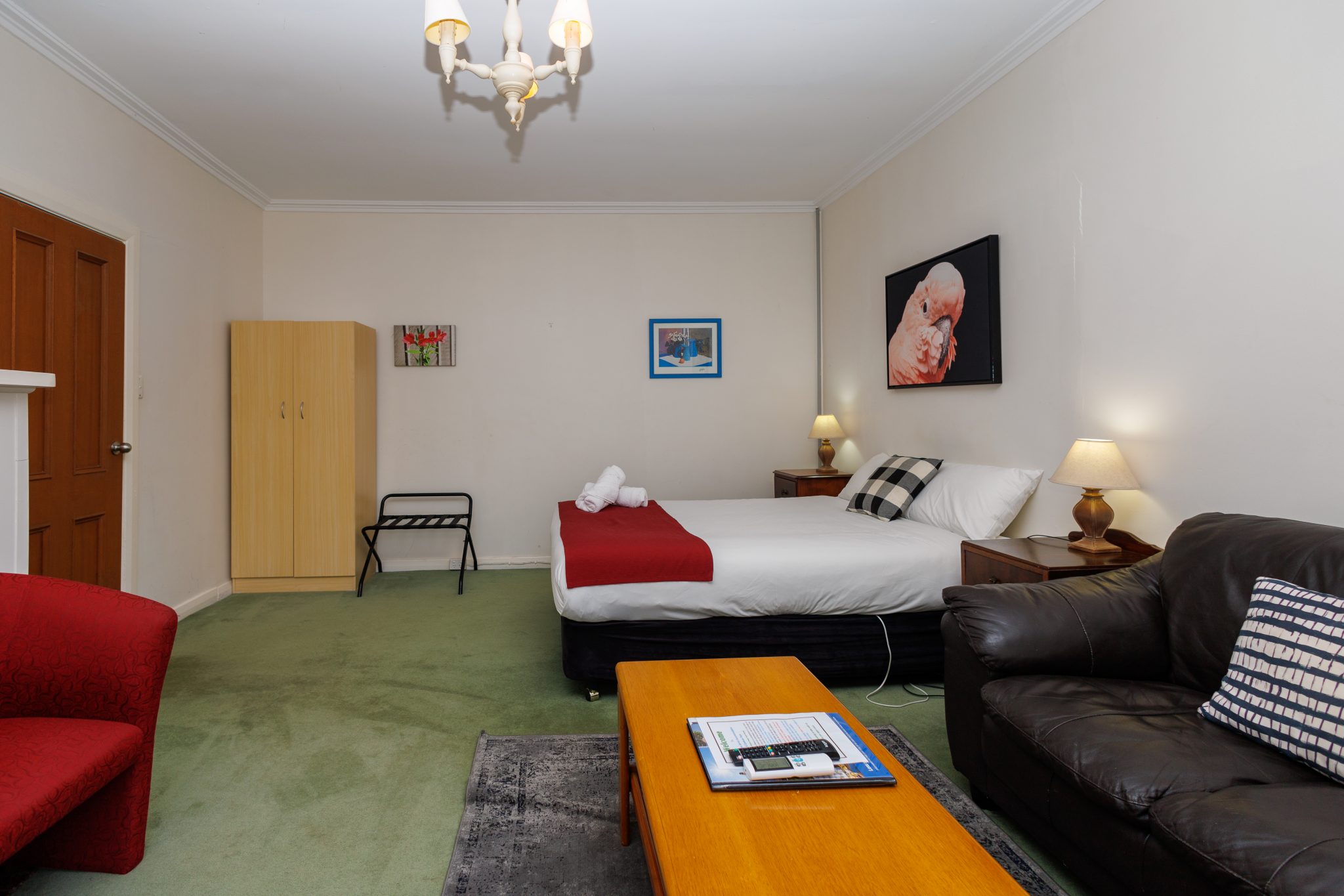 This is a motel family or share style room, known as Homestead No 5, our happy little sun-drenched room - it catches every bit of winter sun yet misses the direct summer heat. It has a queen bed and two singles in one bedroom, plus a lounge to relax on. It has a private bathroom and a neat little table so you can grab a bit of breakfast before starting the day, with RC/AC, tea & coffee making facilities plus a fridge, toaster and microwave. What more do you need? Ideal if you need to stay a couple of days, but don't want to cook.